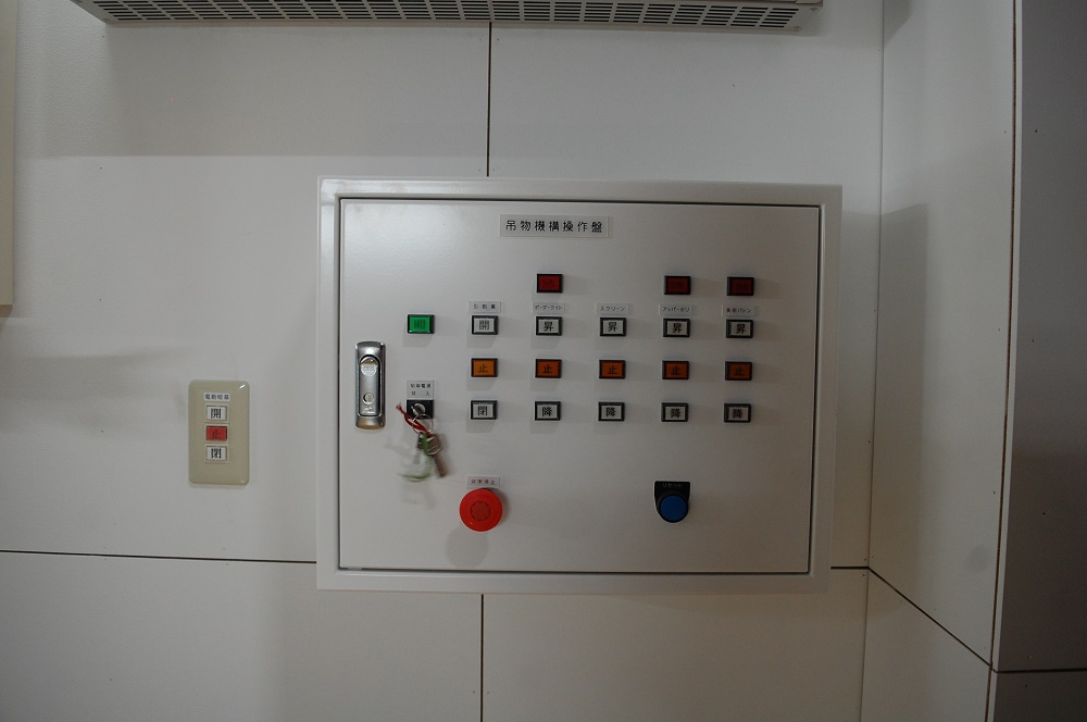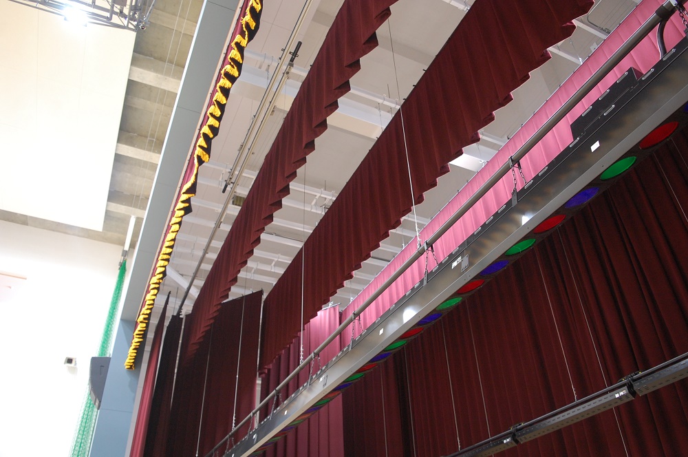 引割幕・照明×2・美術バトン・スクリーン 暗幕が電動式です。