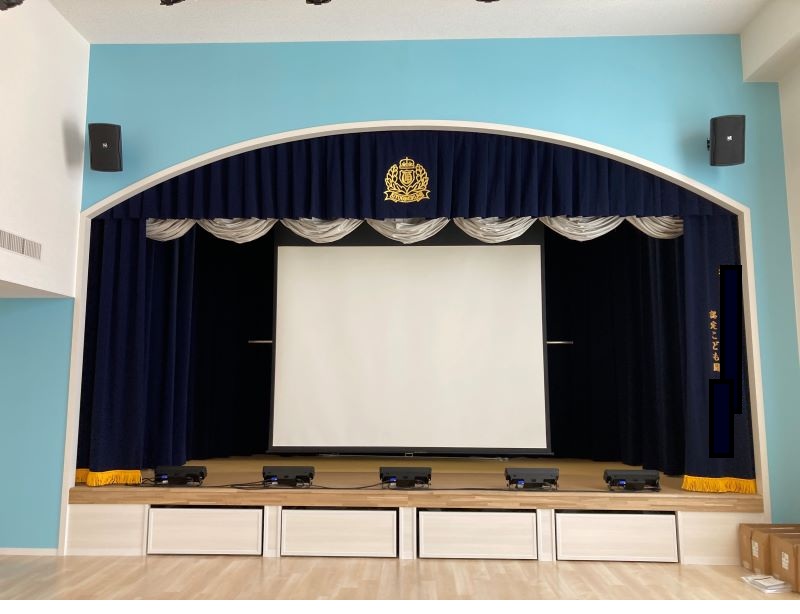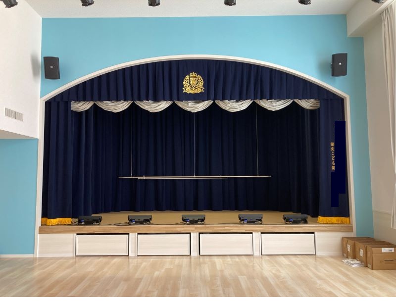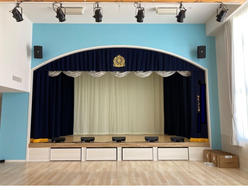 地方の認定こども園の遊戯室の舞台です