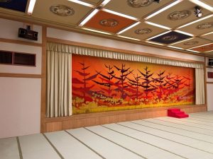 学校の体育館の暗幕用紐引き式レール(特殊仕様)
