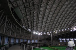 大型スポーツ施設の電動レール部品・暗幕交換